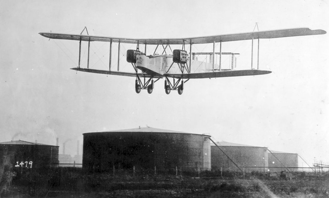 including the American-built versions of the early British bomber, the Handley-Page O/400, as well as countless other small early biplanes.”
