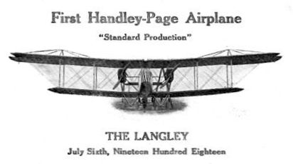 A commemoration of The Langley, the first Handley-Page airplane from the “Standard Production” on 7/6/18.