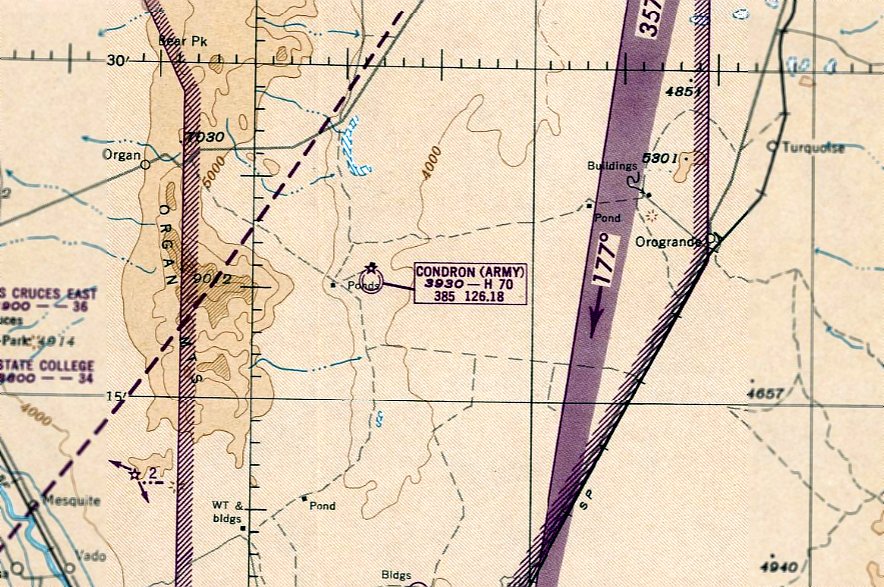 The June 1965 Roswell Sectional Chart (courtesy of Ron Kunse) depicted “Condron AF Aux” as having an unpaved 6,900' runway.