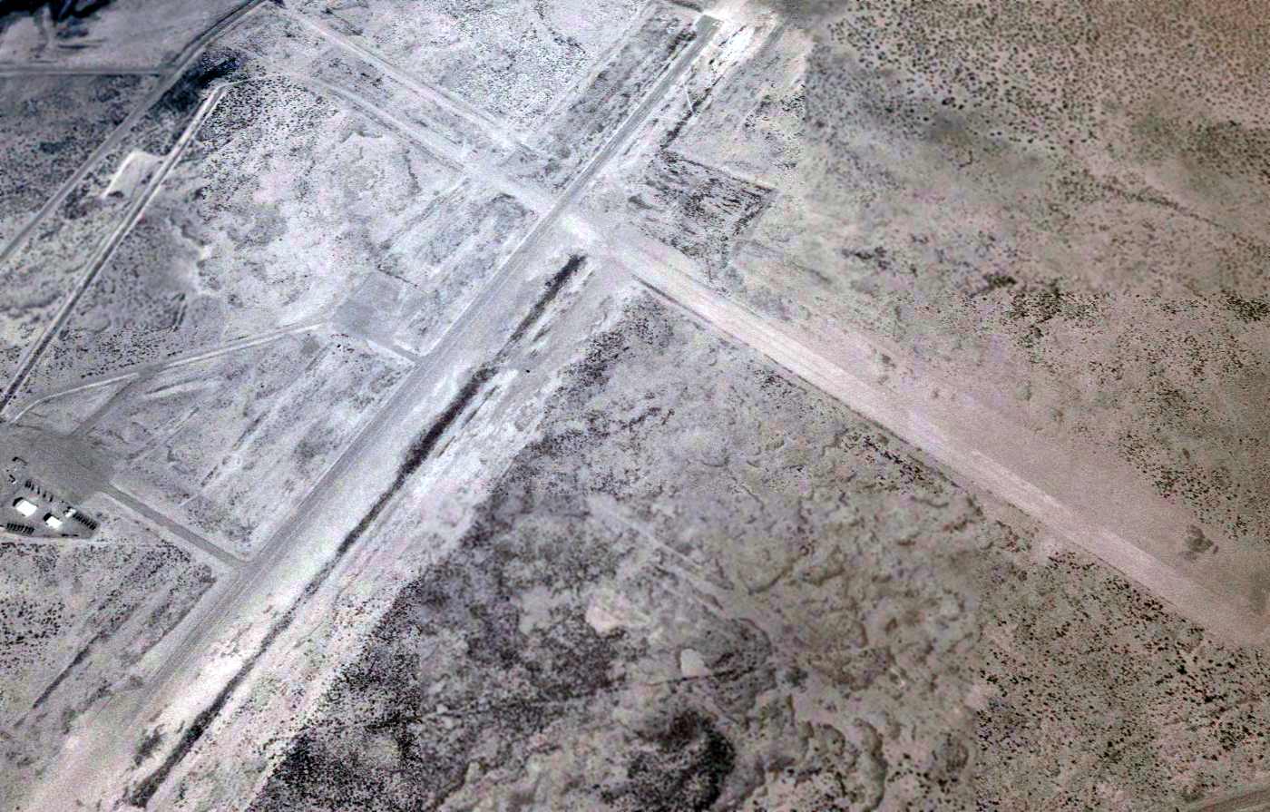 A 1996 USGS aerial view looking west at Oscura AAF clearly showed closed runway "X" markings along both ends of the runway.
