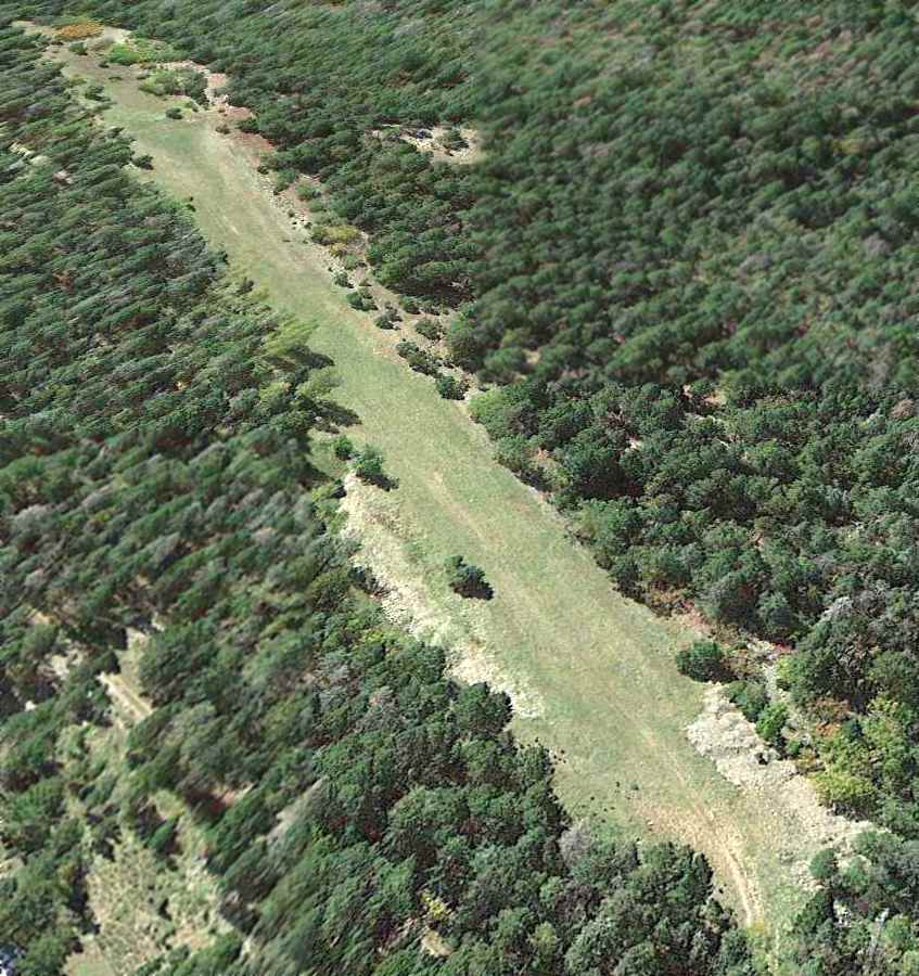 A 1996 aerial view looking east at Condron AAF showed that the southeast/northwest runway had evidently been repaved at some point.