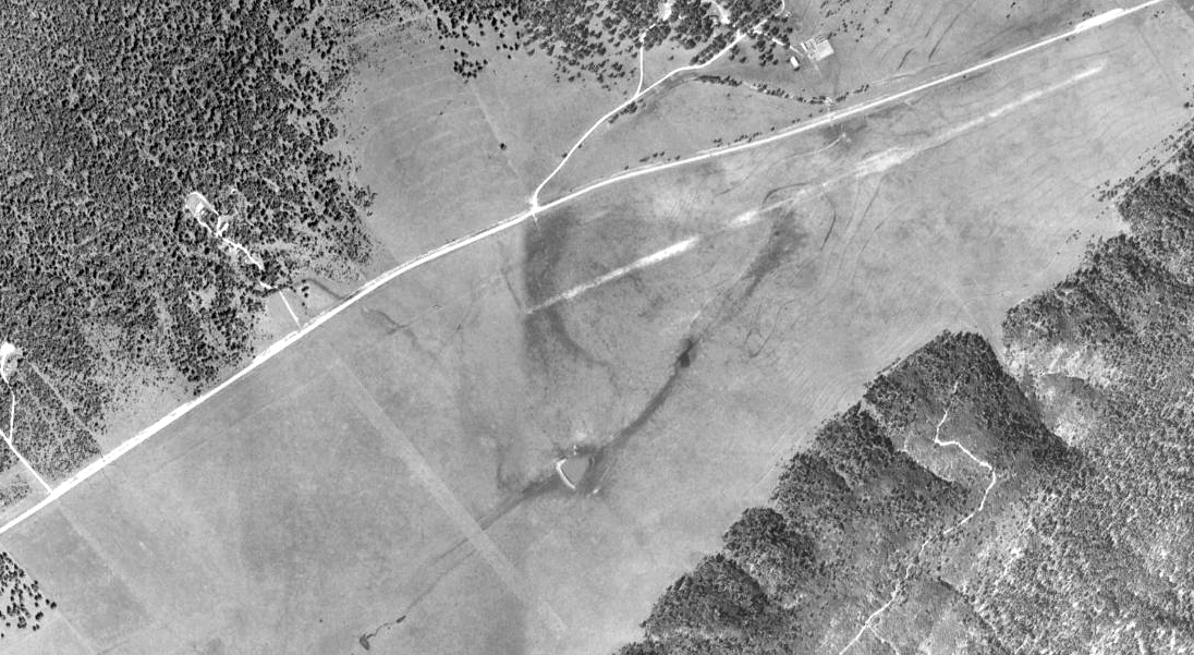 The earliest photo which has been located of Ute Dam Airfield was a 1967 aerial view.