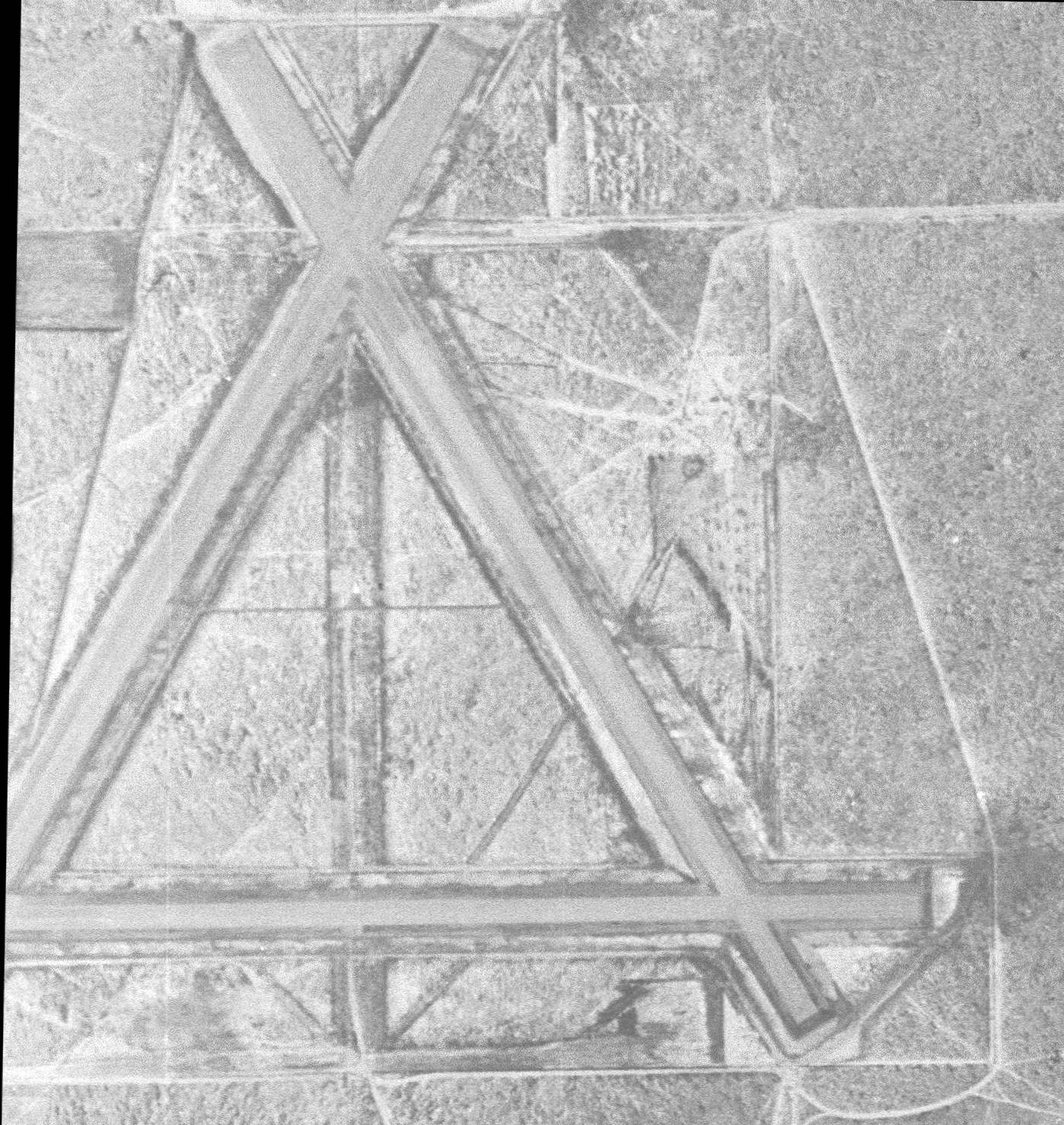 The property of the former airport was still largely intact, and the outlines of the former runways were still recognizable.