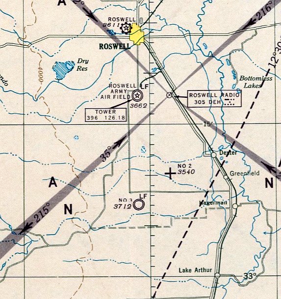 Roswell Airport, as depicted on the 1945 Roswell Sectional Chart (courtesy of Chris Kennedy).