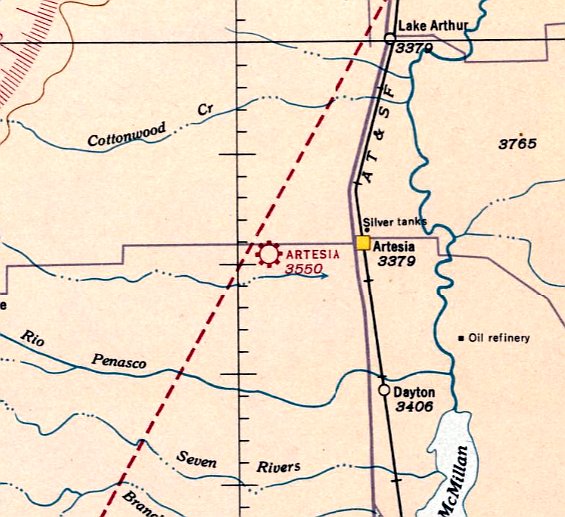 The site of Artesia Auxiliary Army Airfield #8 is located only 2 miles southwest of the present-day Artesia Municipal Airport.