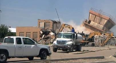 A sad 2015 photo showing the Roswell Municipal Airport control tower being demolished (courtesy of Tim Hahn).