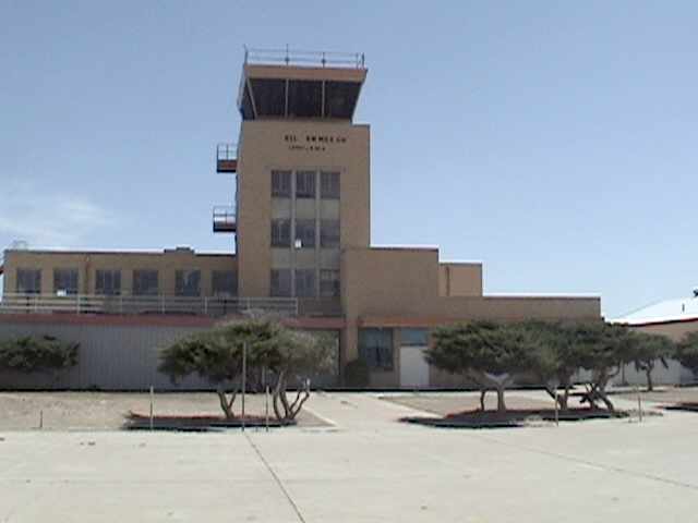 The terminal & the original shed is still standing, painted desert tan.