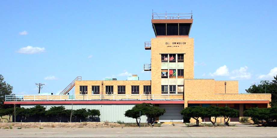 A 2003 photo by Thomas Grimm of the former control tower of the former Roswell Municipal Airport, reused as a teen center.