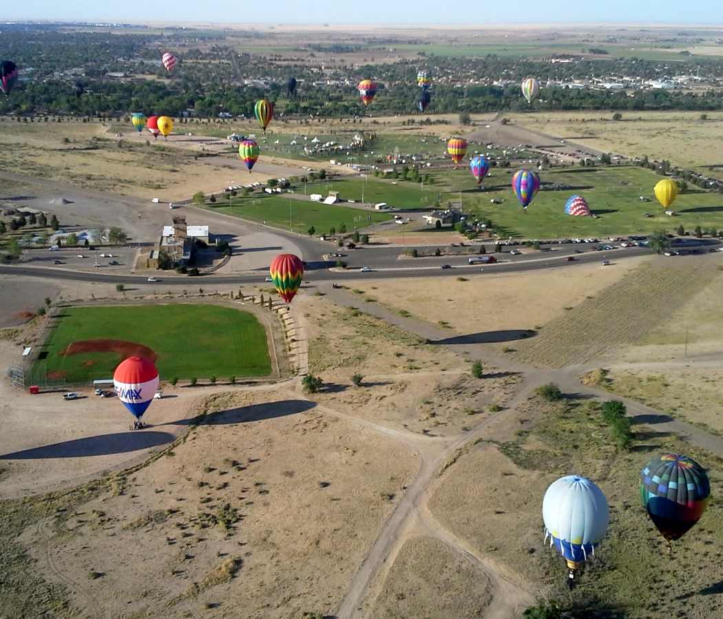 A remarkable May 2014 aerial view by Gil Davis looking south from his balloon at the Roswell Municipal Airport control tower, taken during the Roswell Old-timer's balloon rally.