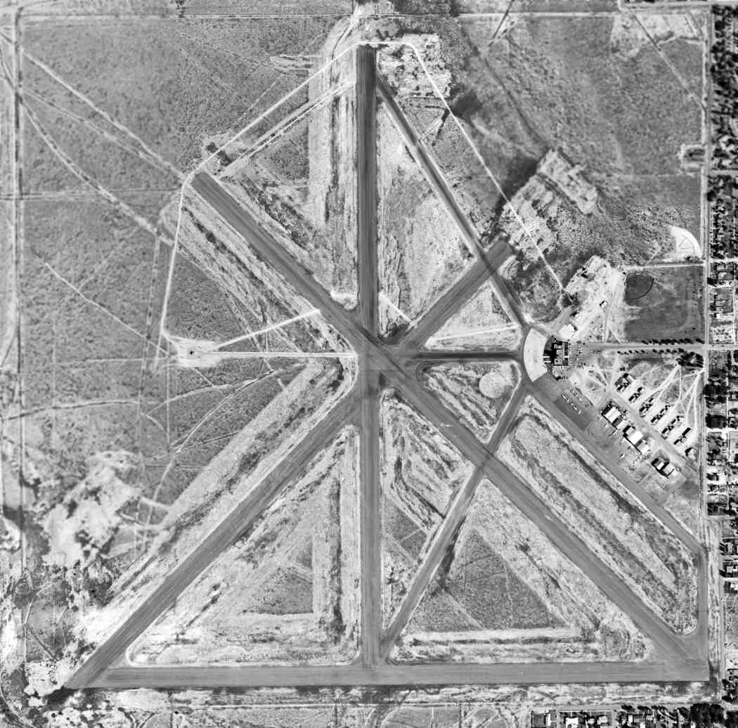 The earliest photo which has been located of Roswell Aux #2 was a 2/5/54 USGS aerial view, which depicted it as having 4 runways.