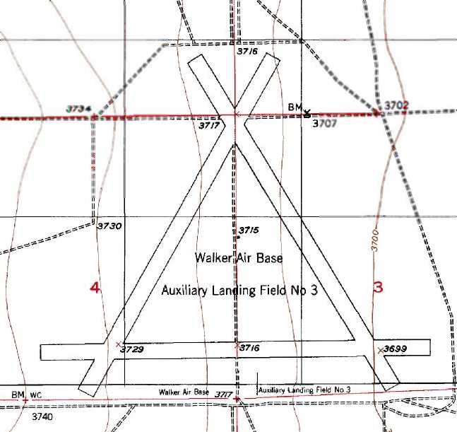 The 1949 USGS topo map depicted the 4 runways as “Walker Air Base Auxiliary Landing Field #1”.