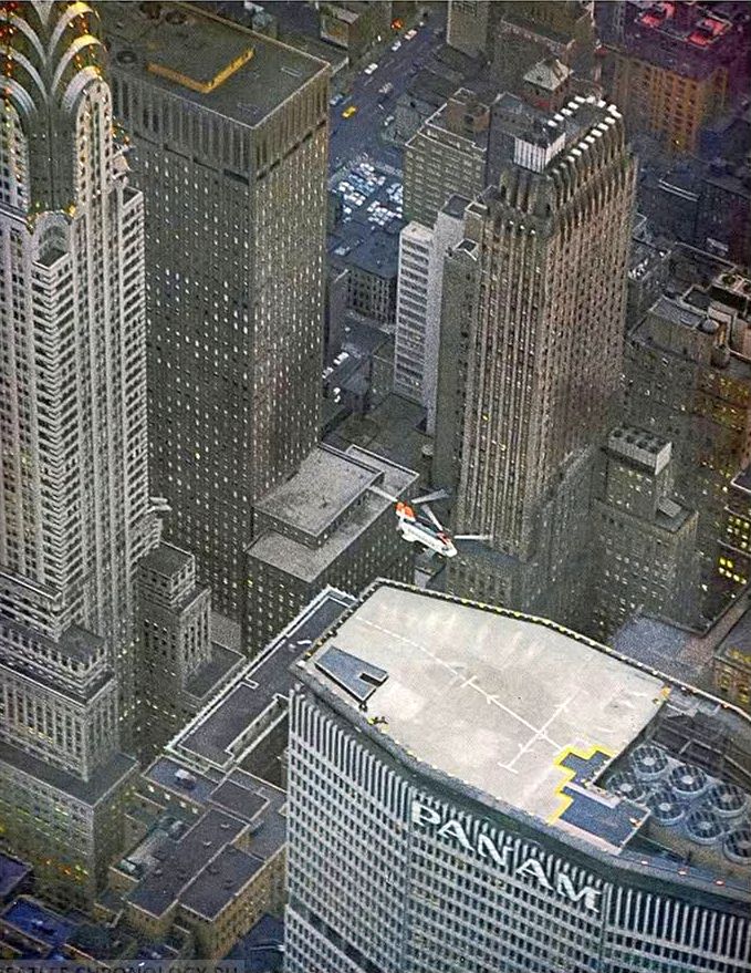 In May 1974, a young man hijacked a helicopter at gunpoint & forced the pilot to fly him to the top of the 59-story Pan Am building, where he demanded that a bikini-clad girl deliver a $2 million ransom.