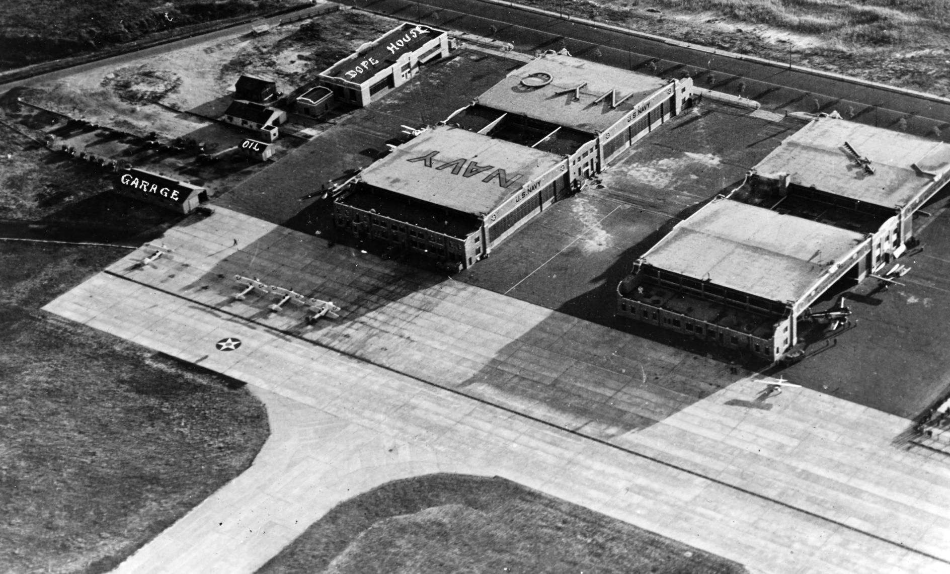 One of the historic hangars, now used by the NYPD Air Operations Unit.