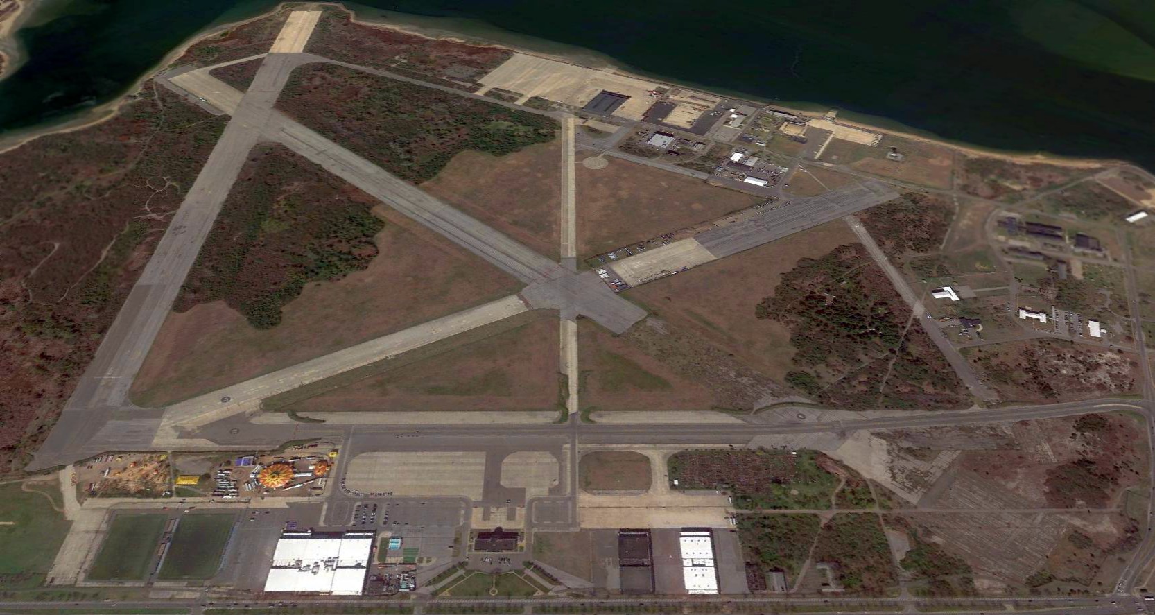 A 2005 aerial photo by Paul Freeman, taken from a Diamond Eclipse at 8,000 feet, looking southeast at Floyd Bennett.
