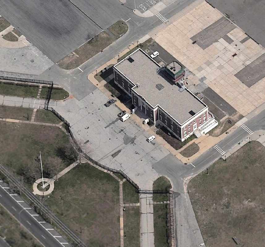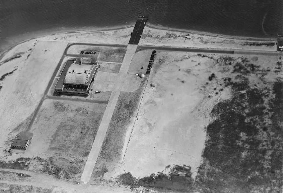 A circa 2005 aerial photo looking north at the former Floyd Bennett terminal building.
