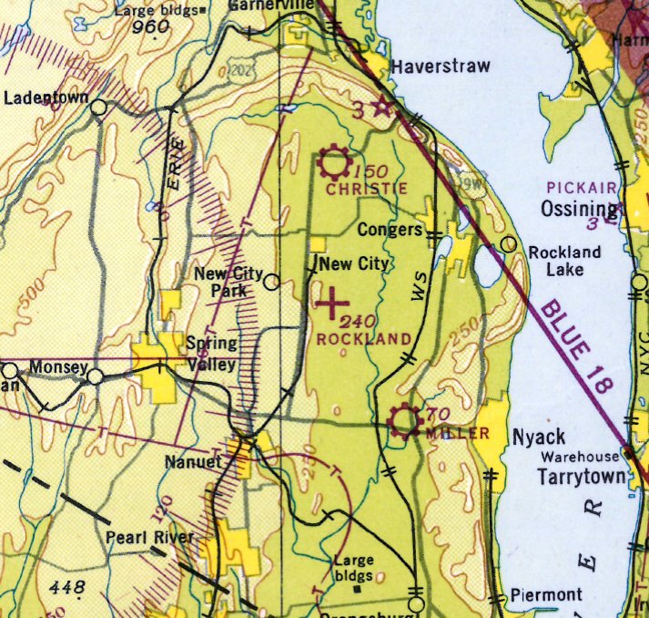 The last aeronautical chart depiction which has been located of Rockland Airport was on the July 1949 NY Sectional Chart (courtesy of Ron Plante).