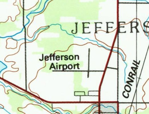 The 1986 USGS topo map still depicted Jefferson Airport as having 2 perpendicular runways, even though the airport had evidently been closed for at least a dozen years by that point.