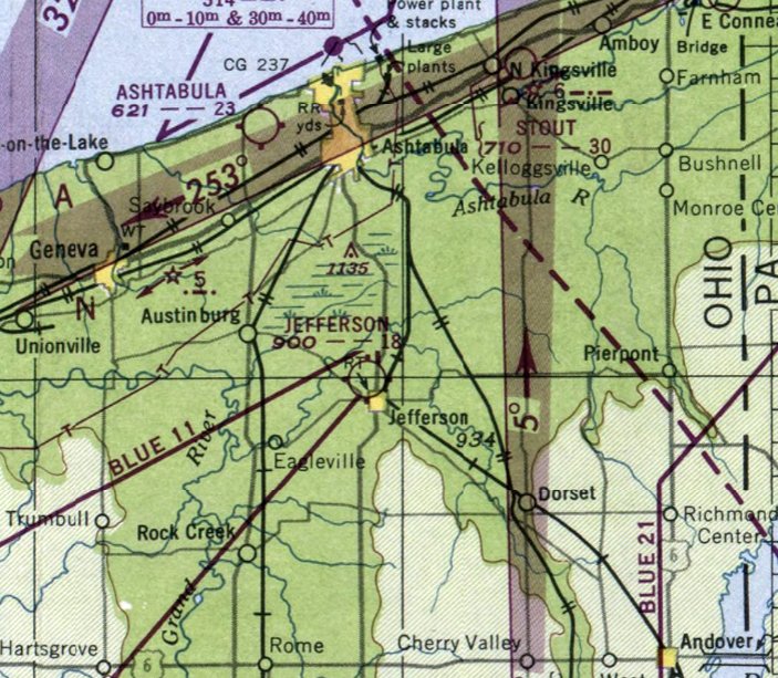 The last aeronautical chart depiction which has been located of Ashtabula-Conneaut Airport was on the May 1981 Cleveland Sectional Chart.