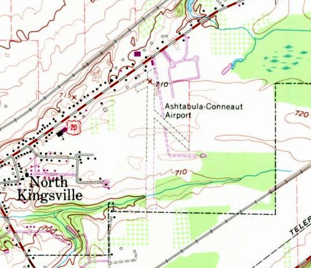 It had lost the northeast/southwest runway, leaving Ashtabula-Conneaut with 2 unpaved runways & a few small buildings on the northwest side.
