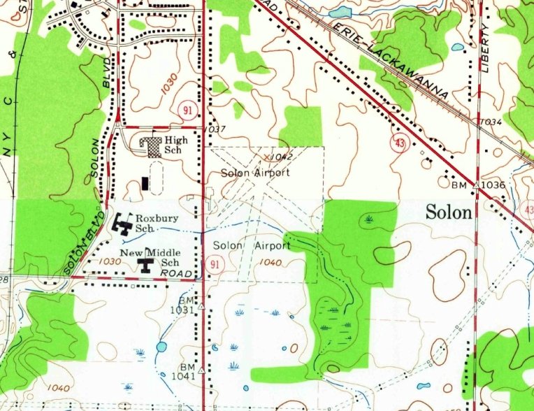 It depicted East End as a commercial/municipal airport adjacent to the south side of the town of Solon.
