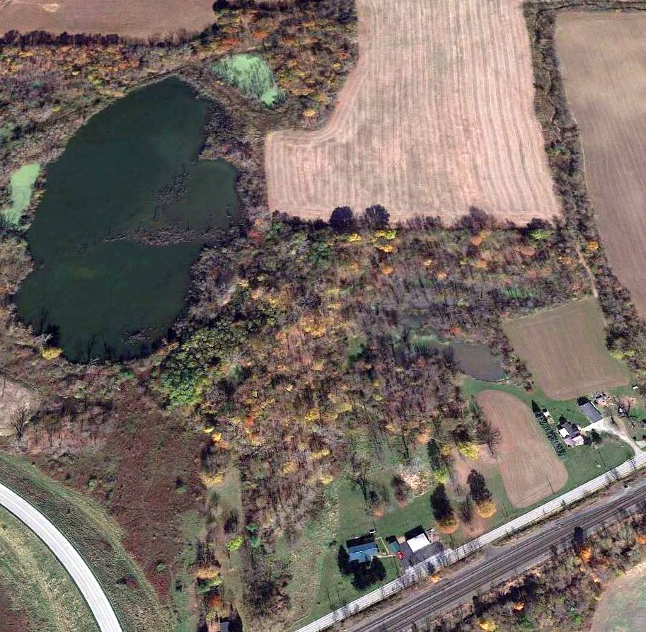 A 2025 aerial view looking northeast showed no trace remaining of the Garrettsville Airfield.