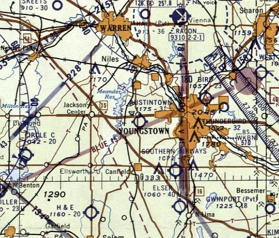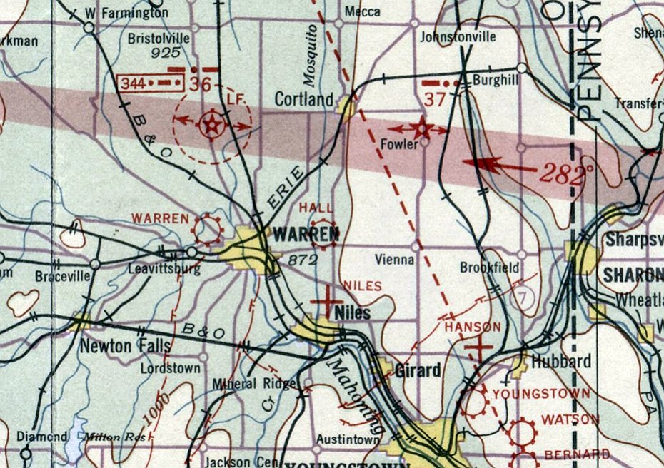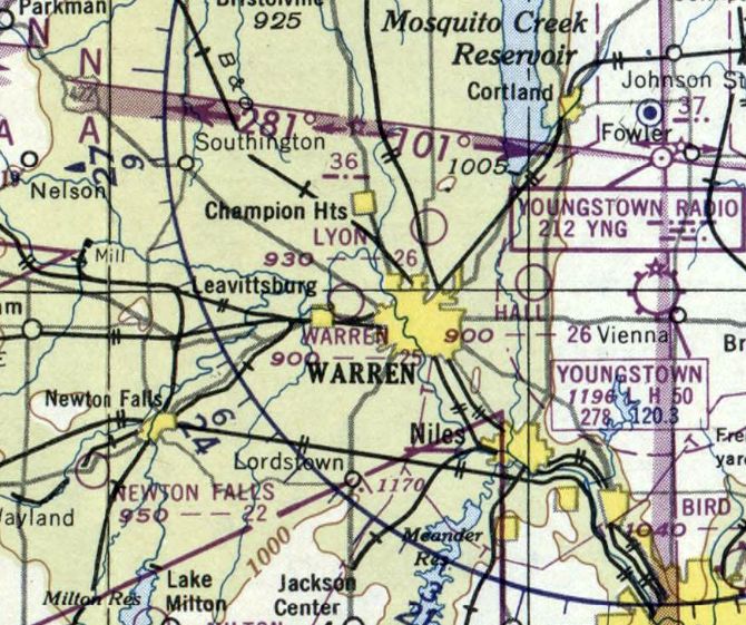 The last aeronautical chart depiction which has been located of Warren Airport was on the June 1950 Cleveland Sectional Chart.