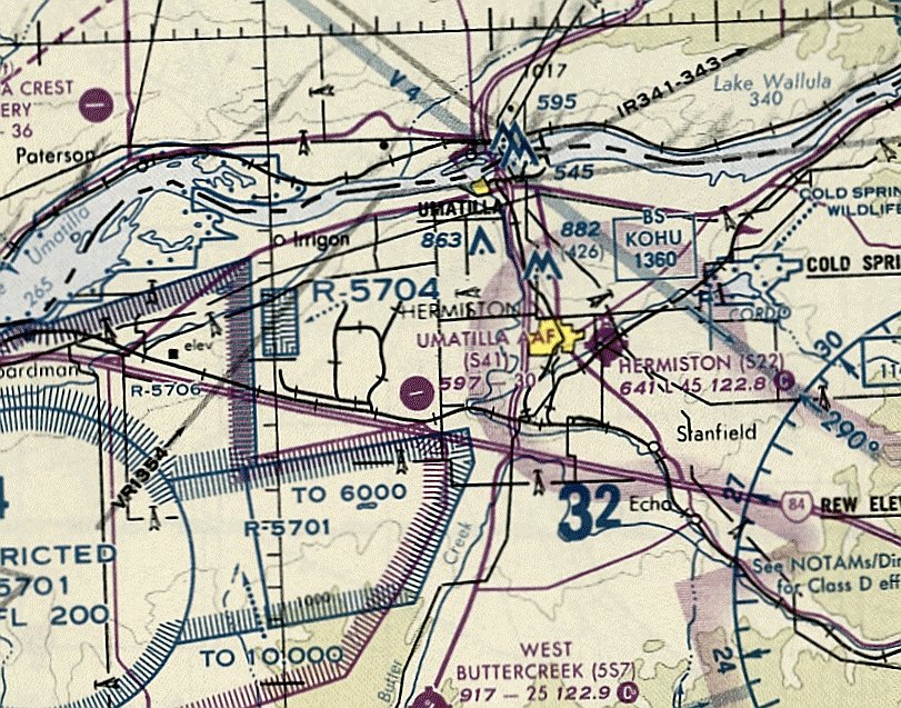 The last aeronautical chart depiction which has been located of the Umatilla Army Depot Airfield was on the January 1994 Seattle Sectional Chart (courtesy of Ron Plante).