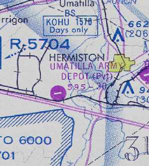 Umatilla Army Airfield, as depicted on the October 1964 USAF Operational Navigation Chart (courtesy of Chris Kennedy).