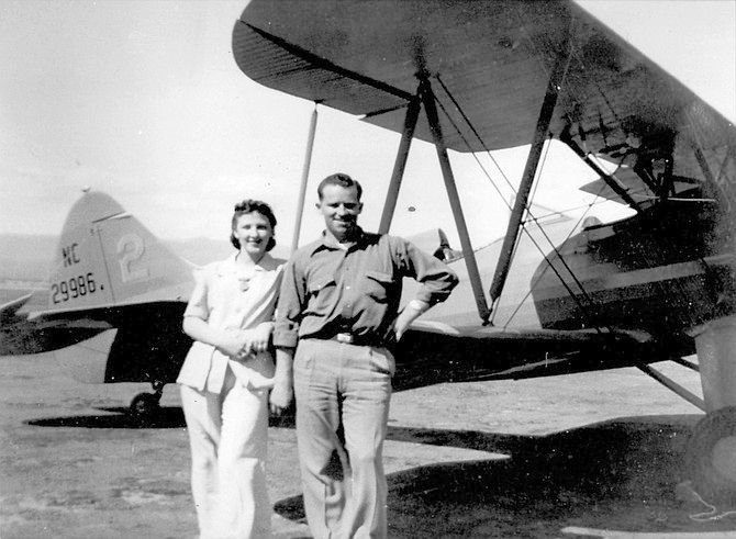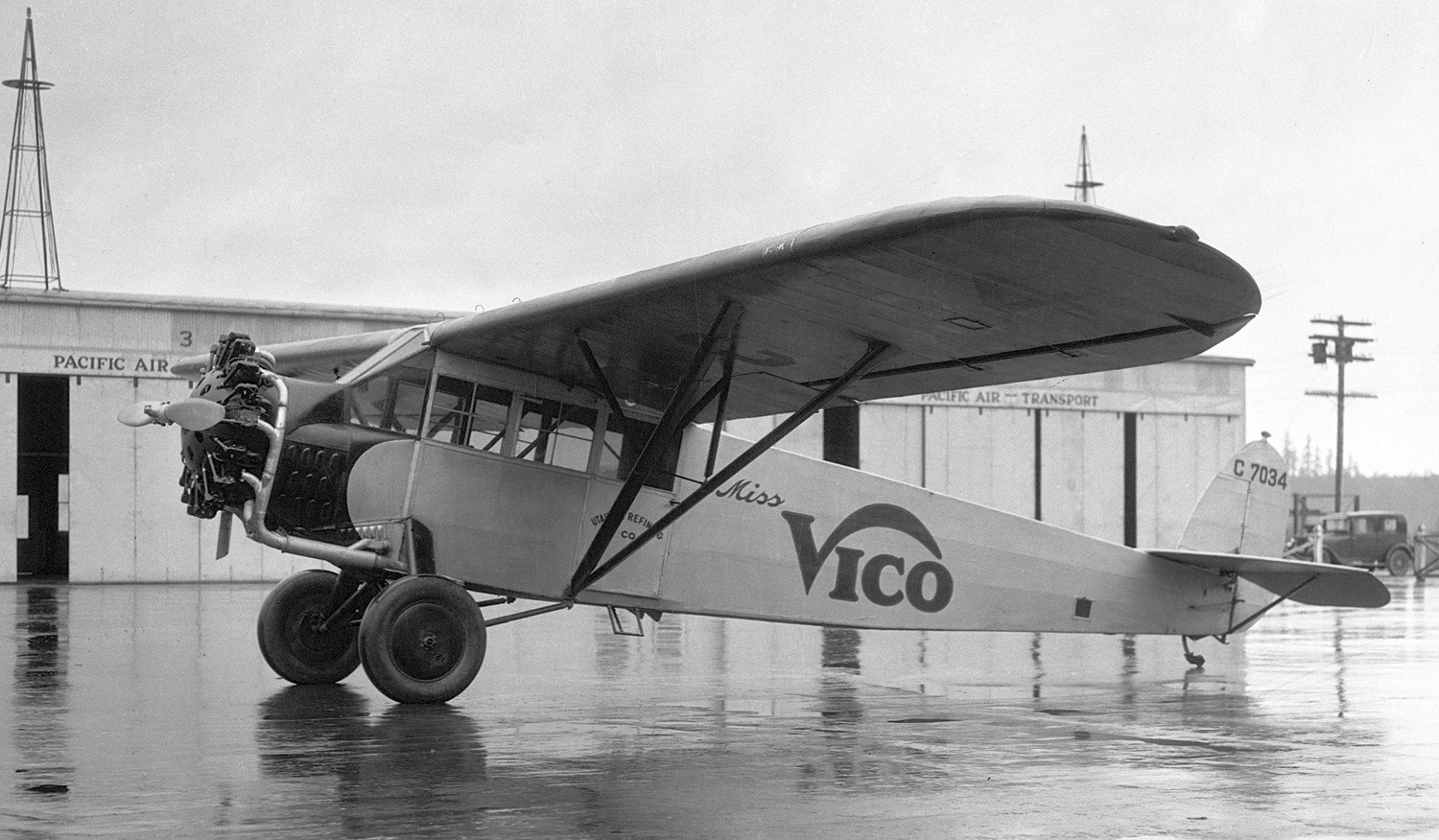 The airplane on the right was a 1929 Swallow owned by Joe Chamberlin, Slats Gill, and Roy Getz.
