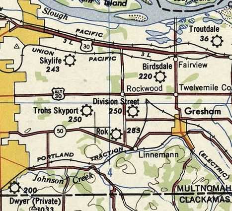 Lyndon Airport, as depicted on the June 1934 Portland Sectional Chart (courtesy of Lee Corbin).