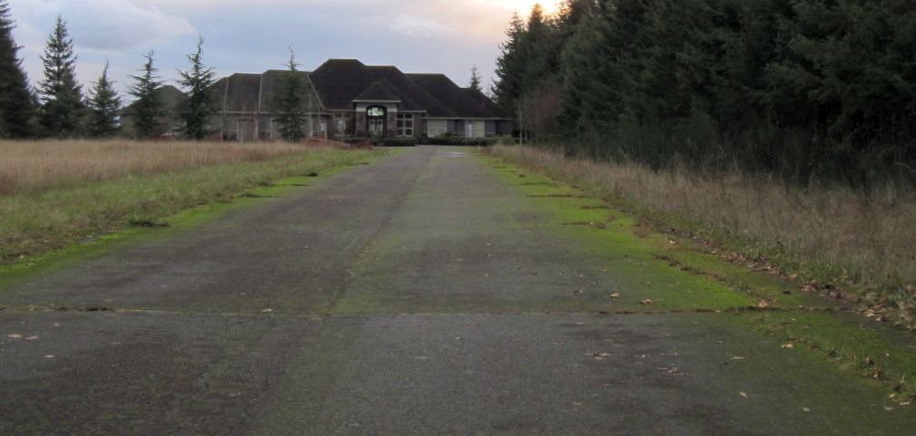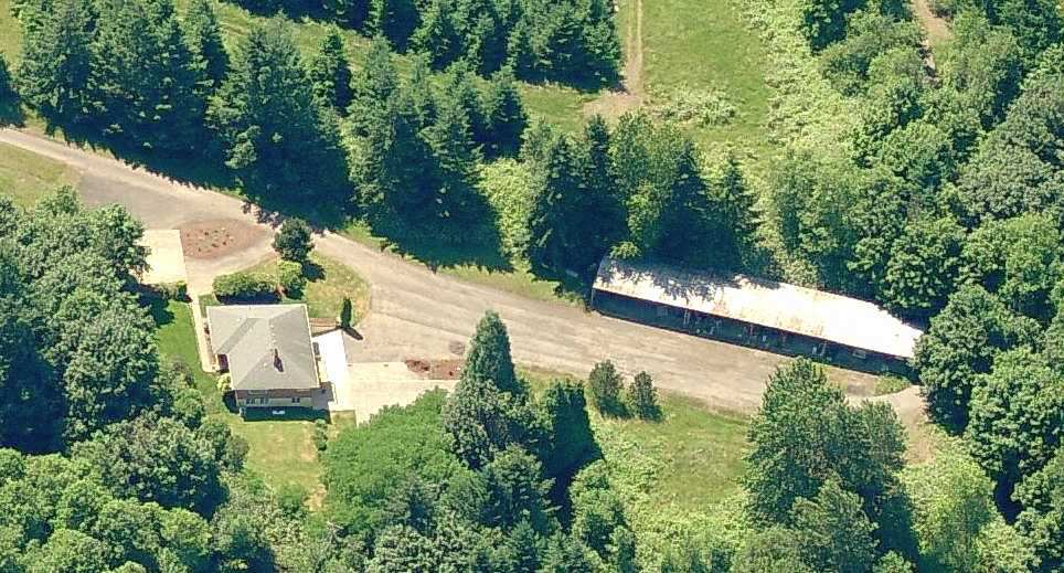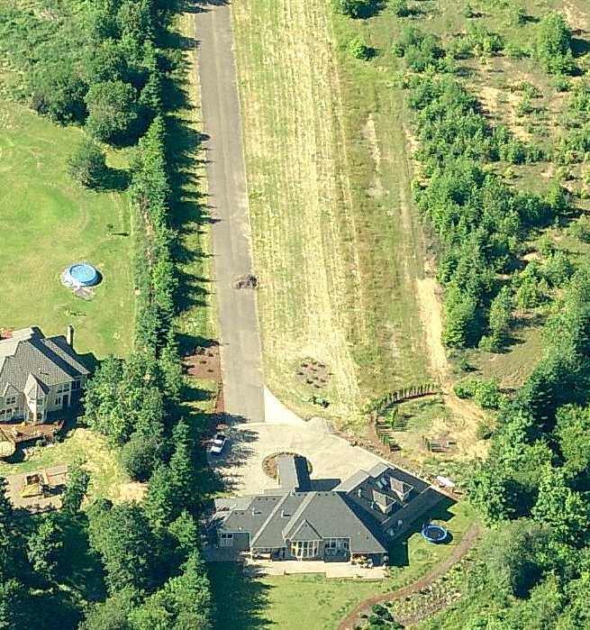 A 2015 aerial view looking southwest at the former Troh house, hangar, and runway at Happy Valley.