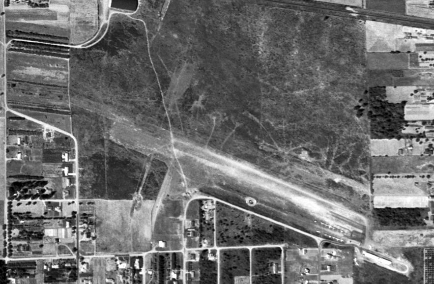 A 1954 aerial photo showed no the remains of what may have been an unpaved northeast/southwest runway at the site of Lyndon Airport.