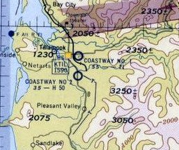 The 1948 USGS topo map depicted Tillamook Coastway #1 Airport as well as the Tillamook Coastway #2 Airport (the larger former Navy airfield to the south).