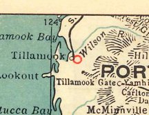 The last aeronautical chart depiction which has been located of Tillamook Coastway #1 Airport was on the Portland 1957 Sectional Chart (courtesy of Jonathan Westerling).