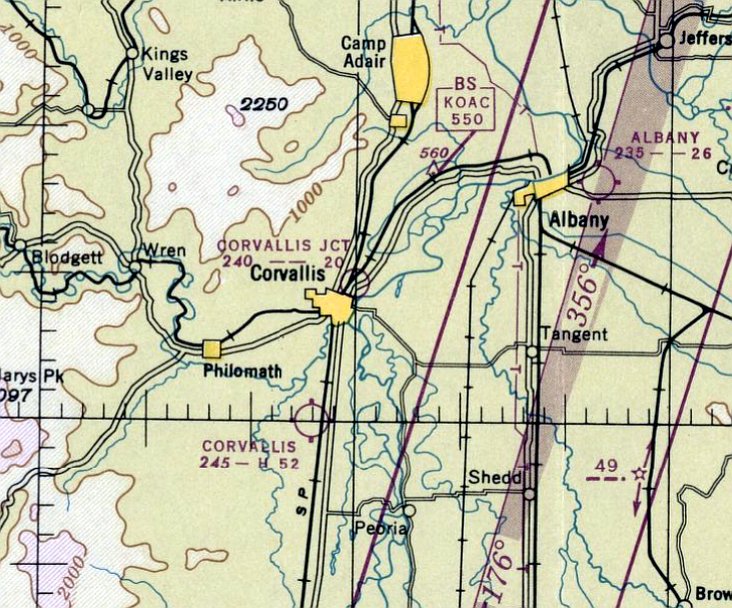 Corvallis Junction Airport (on the northeast side of the town) was not yet depicted on the April 1946 Portland Sectional Chart.