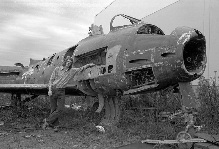 A circa 1960s/70s photo of what appears to have been the remains of a North American FJ-4 Fury behind the still-incomplete Beaverton Mall, the site of Bernard Field.