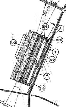 Bernard built wood-frame hangars parallel to Cedar Street,