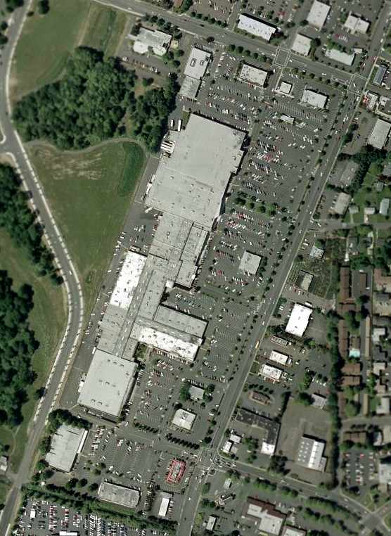 A 1/28/17 photo by Kevin Walsh looking southwest at the site of Bernard Field, occupied by a shopping center.