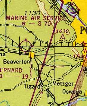 The 1946 Flight Chart (courtesy of Jonathan Westerling) depicted Tillamook Coastway Airport as an auxiliary airfield.