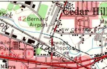 A 1955 street map (courtesy of Kevin Walsh) depicted “Bernard Field Airport” as having a single northeast/southwest runway.