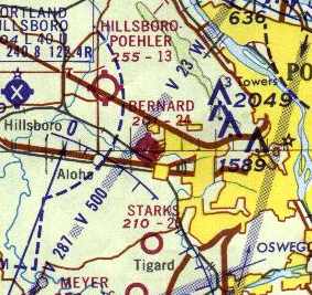 The earliest aeronautical chart depiction which has been located of Bernard Field was on the June 1934 Portland Sectional Chart.