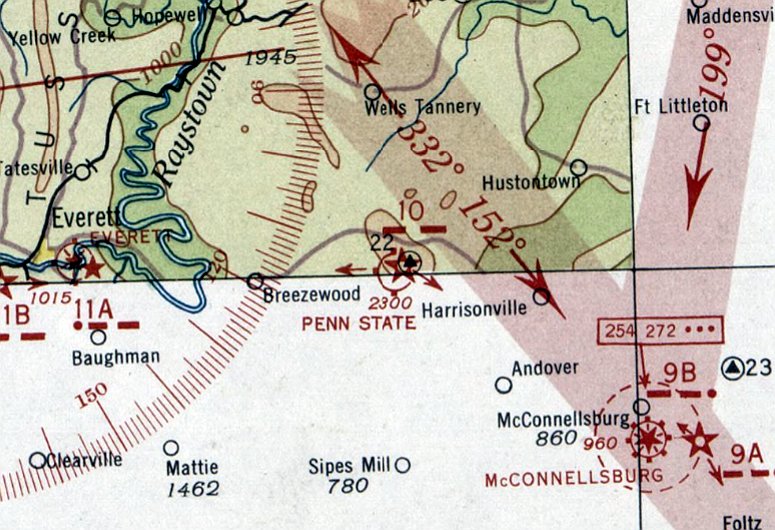 It depicted McConnellsburg Airport as being located along a Commerce Department Airway.
