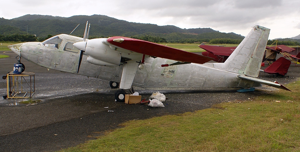 A sad 11/23/08 photo by Hector Rivera of N555DM, a Britten-Norman BN-2A-26 Islander serial # 129, at Fajardo Diego Jimenez Torres Airport.