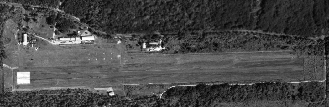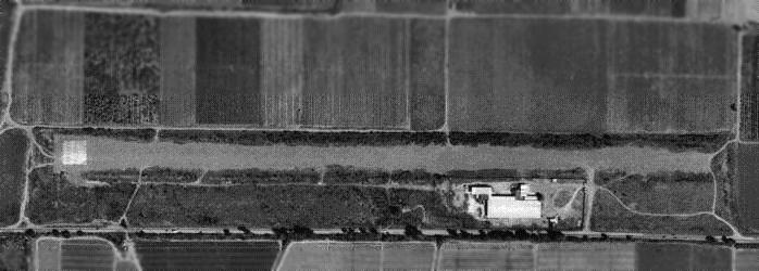 There were 2 small buildings on the south side of the runway, but no aircraft visible on the field.