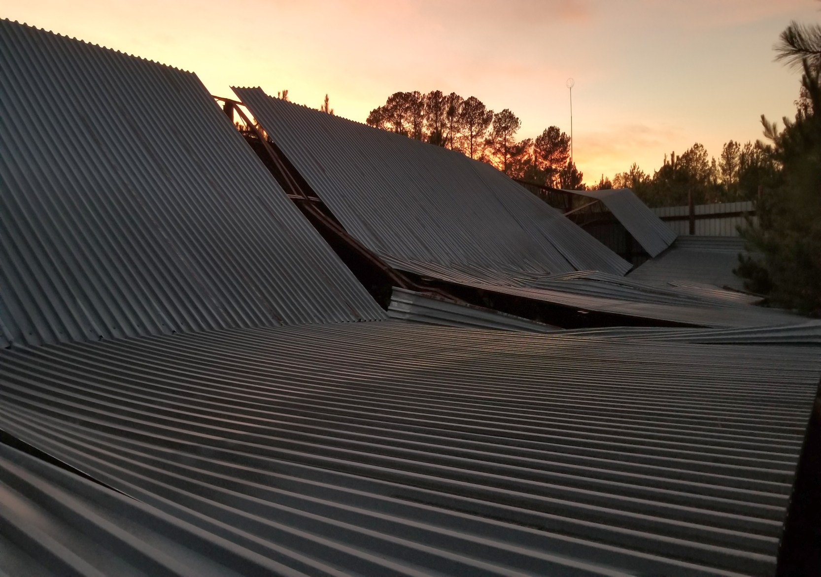 An 11/23/19 photo by Reuben Bakker of the collapsed former hangar at the site of Bethel Lake Wylie Airfield.