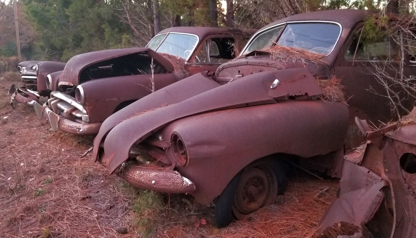An 11/23/19 photo by Reuben Bakker of 3 forlorn classic cars in need of some TLC at the site of Bethel Lake Wylie Airfield.