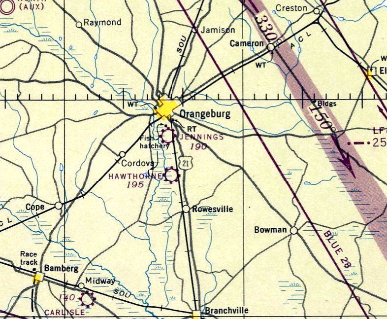 The last aeronautical chart depiction which has been located of Hawthorne Field was on the April 1947 Savannah Sectional Chart,