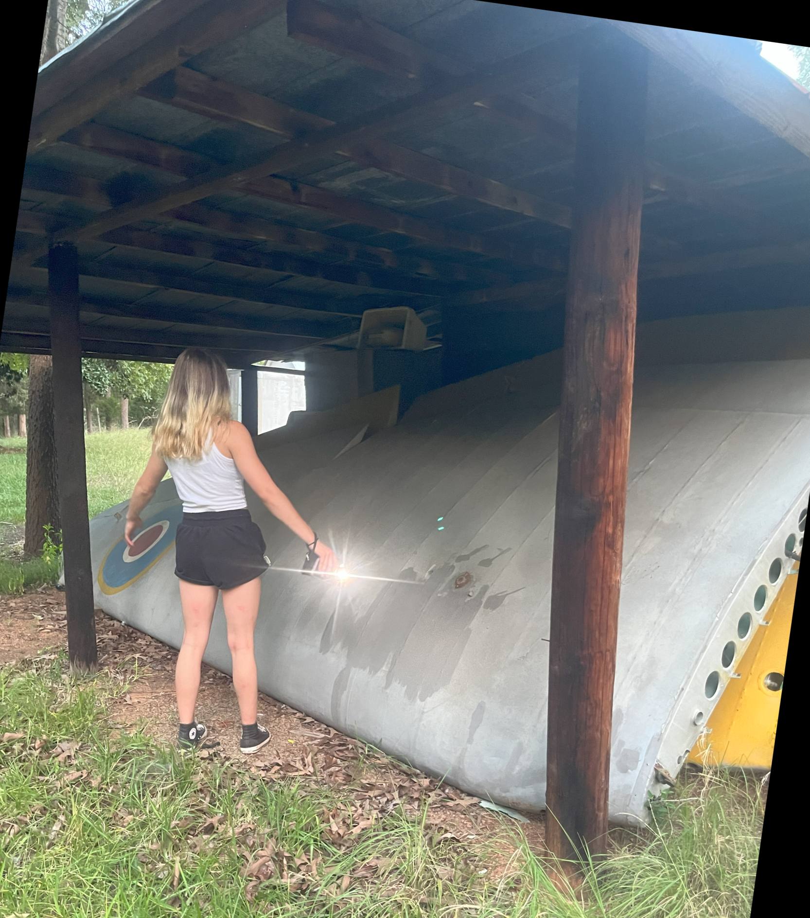 A 2023 photo by Hunter Geib at Shealy Airport of an unidentified wing, which appears to have an RAF roundel.
