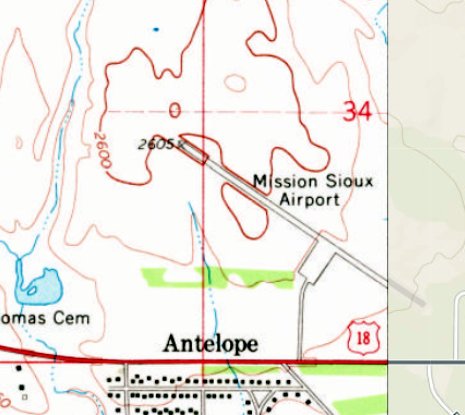 The last aeronautical chart depiction which has been located of Mission Sioux Airport was on the 2005 SD Aeronautical Chart (courtesy of Jonathan Westerling).