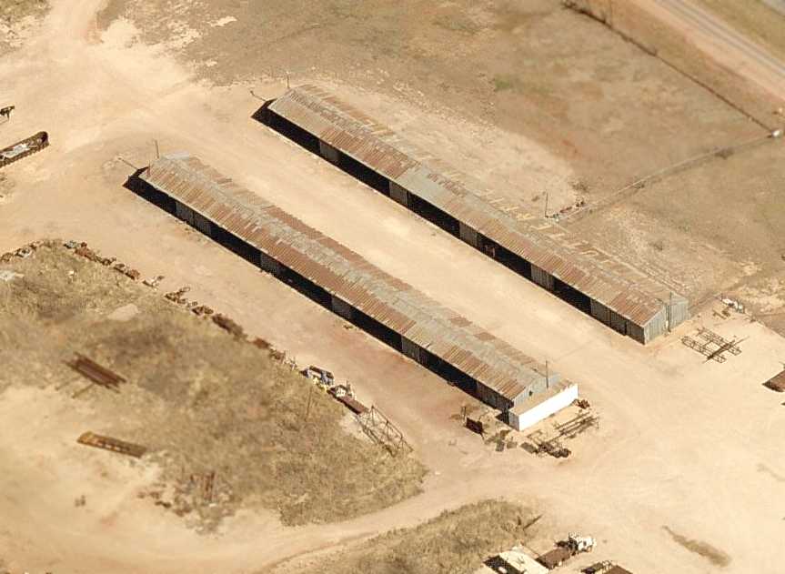 Taken at the South end of the hangars looking South East. The large double-wide mobile home was used as an office, pilot lounge, and training room.